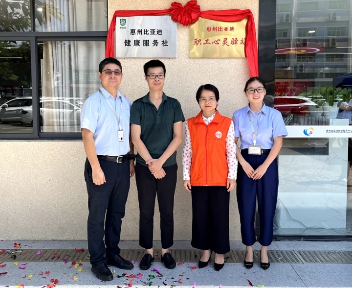 惠州日報訊 (記者曾靜妍 通訊員葉青青)日前,惠州比亞迪健康服務社揭牌儀式在惠州比亞迪黨群服務中心舉行,這是大亞灣區首家專屬企業職工群體的公益心理服務園區健康服務社。