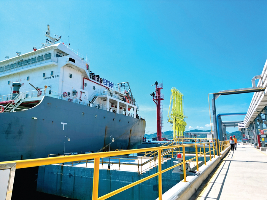 7月26日上午,隨著汽笛鳴響,中海油惠州石化產品出廠銷售配套設施項目首船在惠州港業5萬噸級石化碼頭啟動裝船作業,標志著惠州石化產品出廠銷售配套設施正式投用。這是石化區與港區兩地資源有機整合、深度融合的生動寫照。