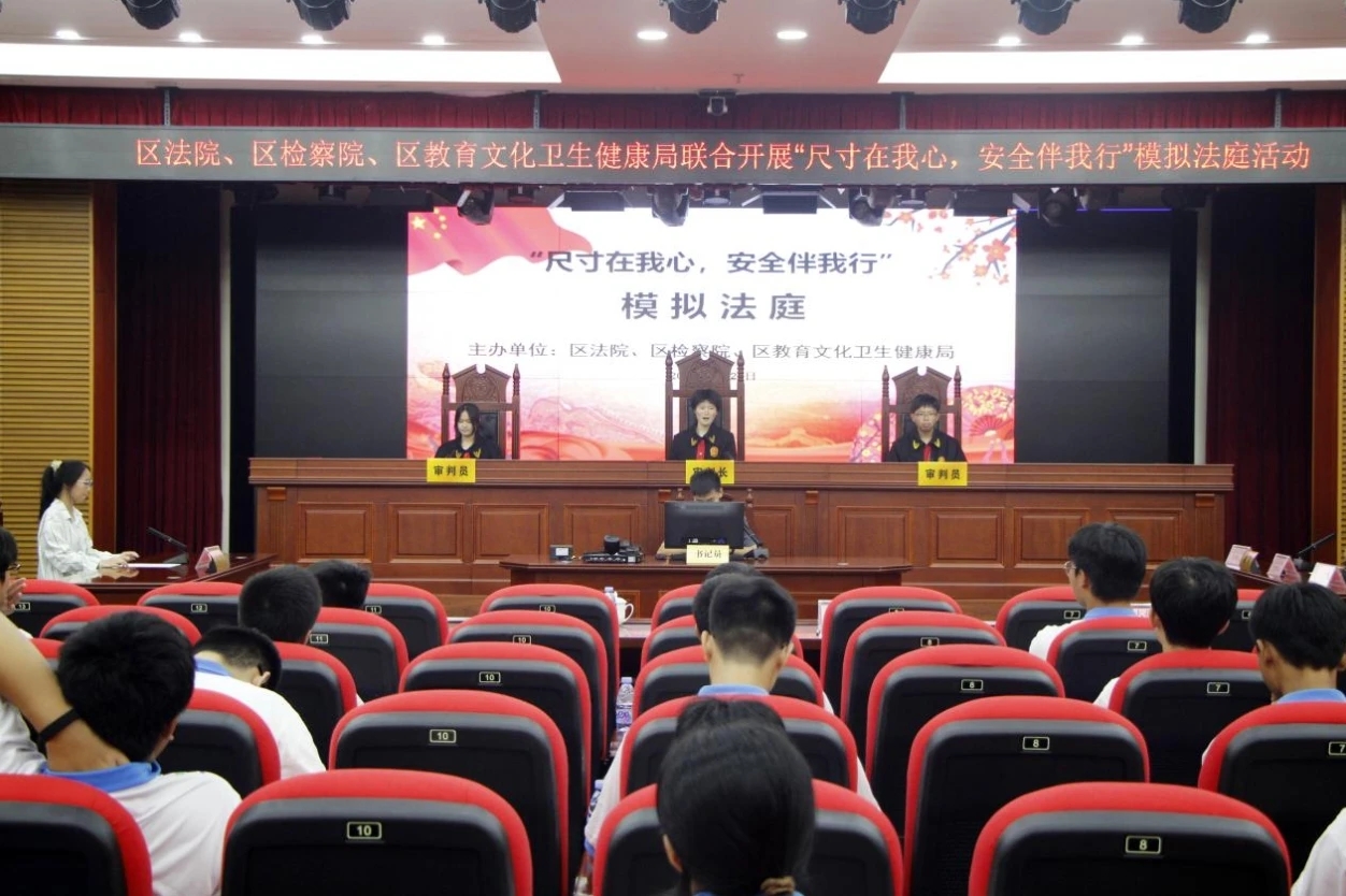 惠州日?qǐng)?bào)訊 (記者張宇琪 通訊員章婷)“請(qǐng)全場(chǎng)肅靜,現(xiàn)在宣布法庭紀(jì)律。”9月21日,大亞灣開發(fā)區(qū)人民法院與區(qū)檢察院、區(qū)教育文化衛(wèi)生健康局聯(lián)合舉辦了一場(chǎng)別開生面的“尺寸在我心,安全伴我行”模擬法庭活動(dòng),大亞灣第一中學(xué)40余名學(xué)生走進(jìn)區(qū)法院,沉浸式體驗(yàn)法庭庭審過程,近距離感受法律的神圣與威嚴(yán),切實(shí)增強(qiáng)懂法、守法、用法的法治意識(shí)。