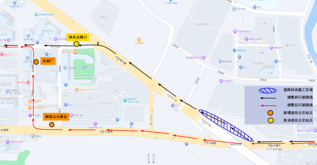 新增停靠站點:御璽山大峽谷、永昶廠、響水北路口。