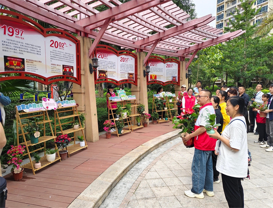 新荷社區黨支部聯動回家黨員捐贈盆栽,打造“百花園”。