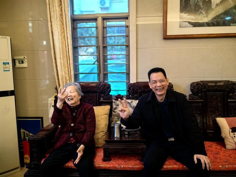 西區街道新寮村羅瑞珍和黃國池母子。