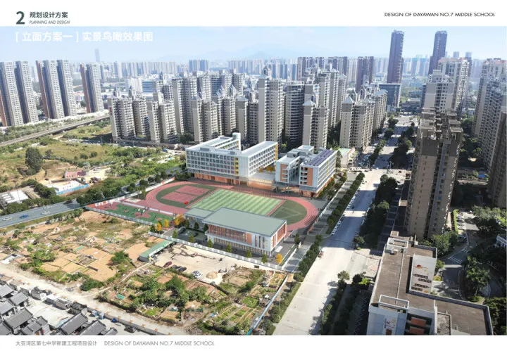根據(jù)《公示》,大亞灣區(qū)第七中學(xué)位于大亞灣西區(qū)錦繡北路和挺新路交會(huì)處,規(guī)劃為24班初中,總用地面積25670㎡,總建筑面積30561.67㎡。