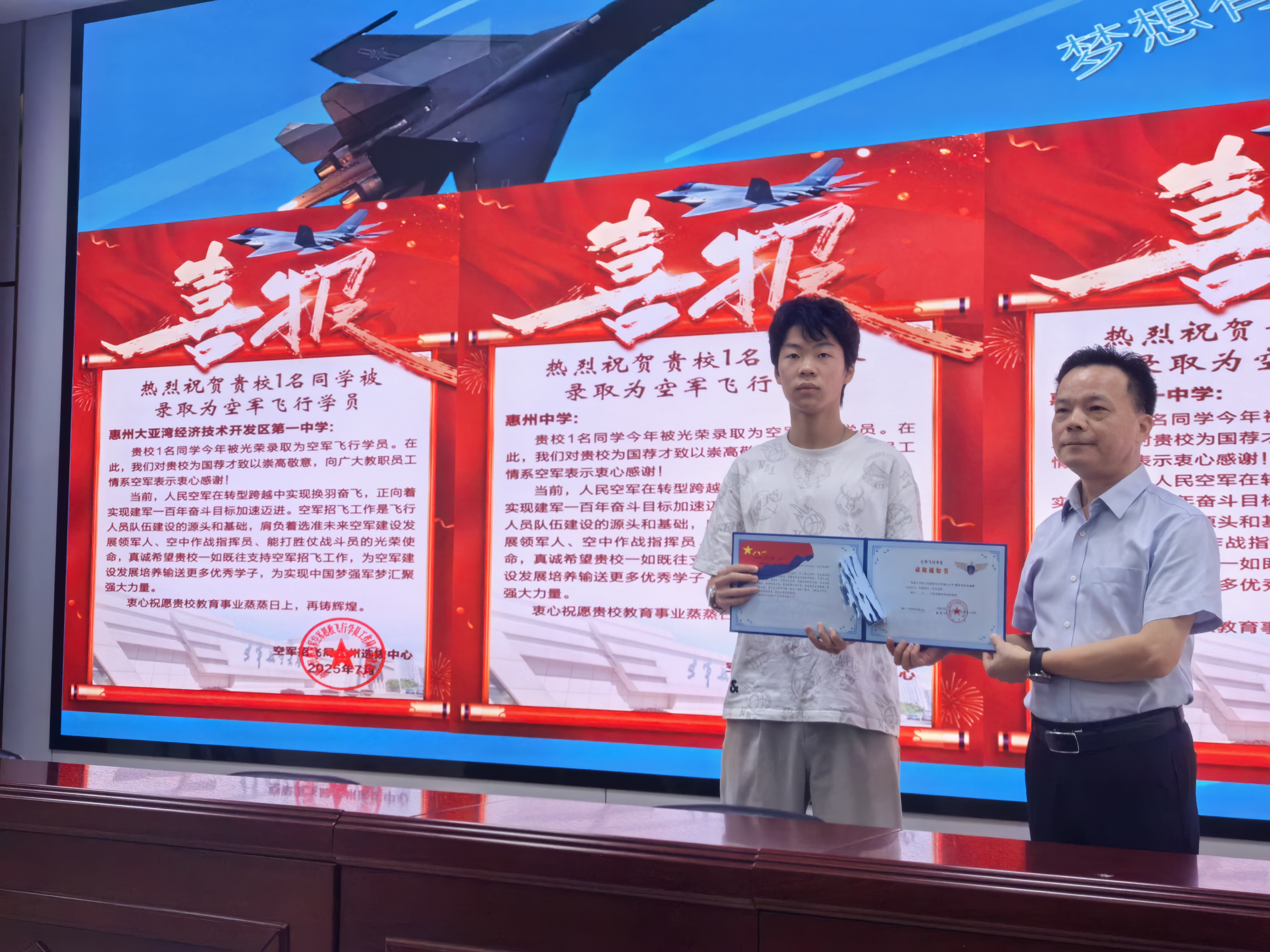 大亞灣第一中學(xué)學(xué)生肖子揚(yáng)被錄取為空軍飛行學(xué)員