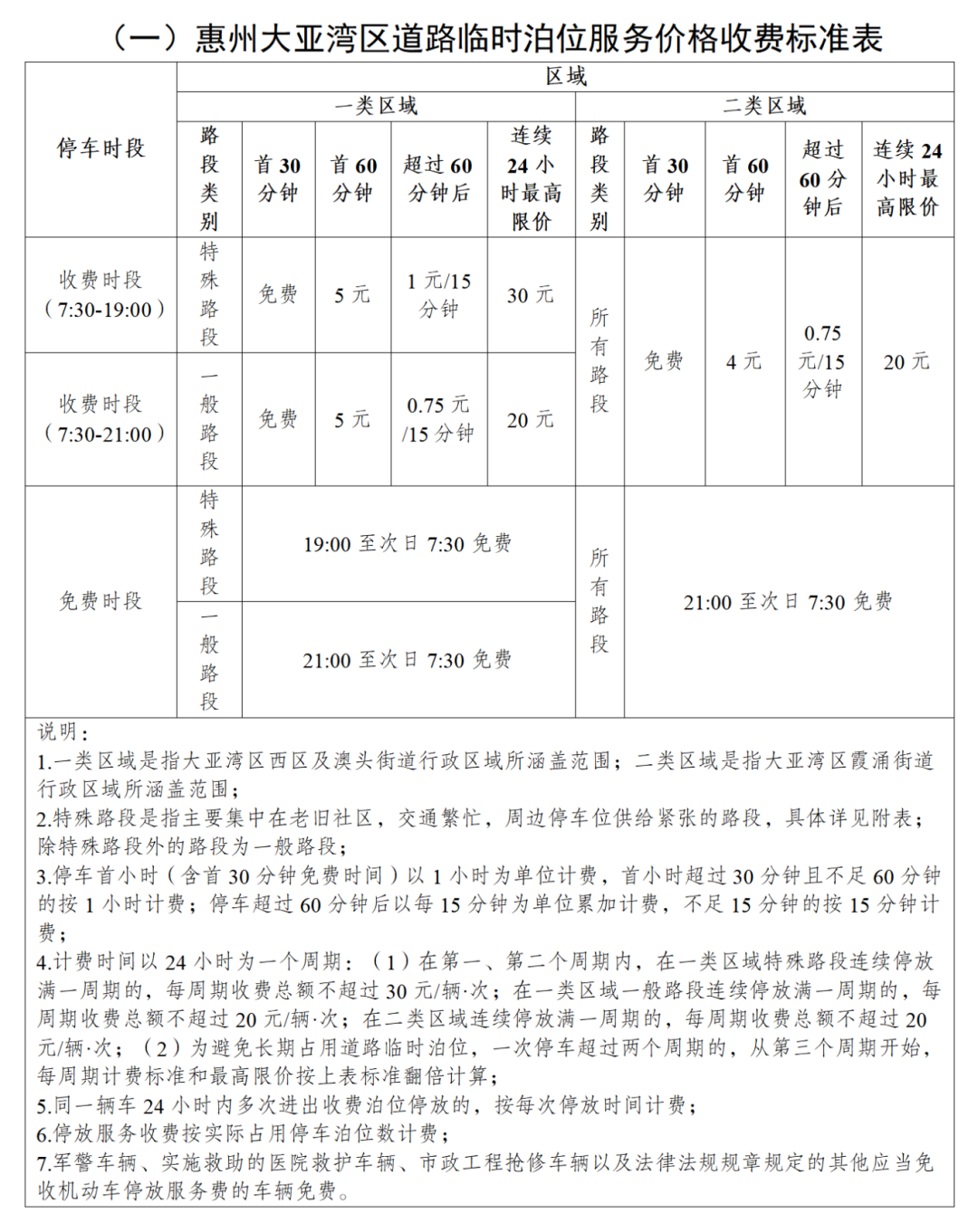 路邊泊位收費標準及范圍