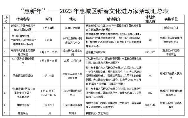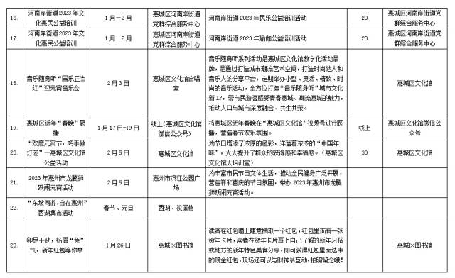 歲末迎新,兔年將至,這個(gè)春節(jié)如何度過?日前,春節(jié)期間惠城的景點(diǎn)景區(qū)旅游和鎮(zhèn)街的文化活動(dòng)正式公布,這份“花式”過年指南收藏起來。