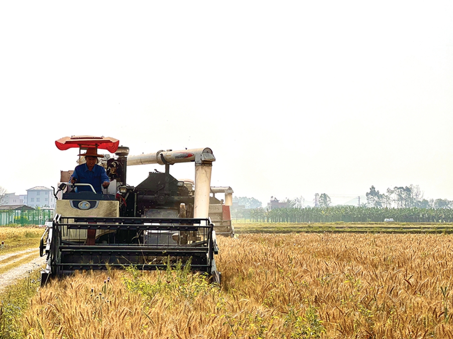 進(jìn)入3月,正是春耕育苗的好時(shí)節(jié),但在惠城區(qū)馬安鎮(zhèn),120多畝金燦燦的麥田卻迎來(lái)了成熟收割期。放眼望去,田野里麥浪滾滾,金黃色的麥穗在微風(fēng)下舞動(dòng)。伴隨著轟鳴的機(jī)器聲,一顆顆金黃的麥粒脫殼而出,“跳躍”歸倉(cāng)。