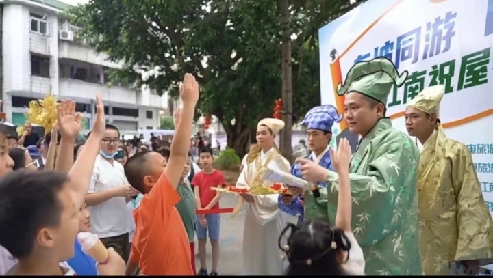 在五一國際勞動節當天,由演員扮演的江南四大才子之一“祝枝山”穿越時空,穿梭于“他”曾居住過的祝屋巷街頭,與來往的游客互對傳統詩詞,以沉浸式體驗的方式,讓游客感受到鮮活有趣的歷史文化。