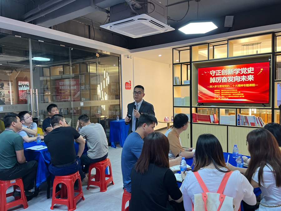 參觀黨群服務(wù)中心、黨建文化廣場(chǎng),參加沙盤(pán)推演互動(dòng)課堂,活學(xué)深學(xué)黨的二十大精神;在北門(mén)直街,走進(jìn)府城文化長(zhǎng)廊,追尋朝京門(mén)古城記憶,了解革命先輩在惠州的壯烈革命歷史;踱步歷史文化街區(qū)——金帶街,參觀賓興館,學(xué)習(xí)了解惠州科舉歷史文化……當(dāng)日,在這個(gè)“共享課堂”的“橋西專(zhuān)場(chǎng)”,40多名潼僑鎮(zhèn)黨員在橋西沉浸式開(kāi)展了一場(chǎng)紅色學(xué)習(xí)之旅。