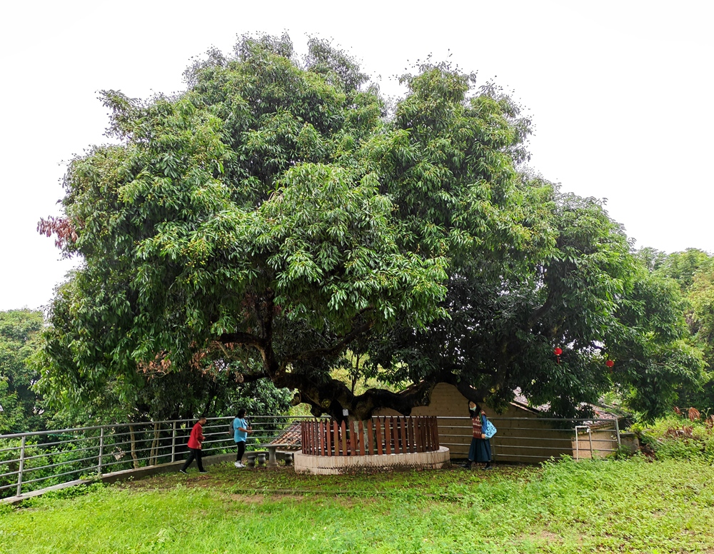 在歷代村民的呵護(hù)珍視下,這棵古荔枝樹至今仍枝繁葉茂,每年開花結(jié)果。因?yàn)檫@棵古樹的“坐鎮(zhèn)”,也常有游客到大陵崗尋幽訪古,叩問古荔枝故事,或樹下乘涼,遐想萬千。