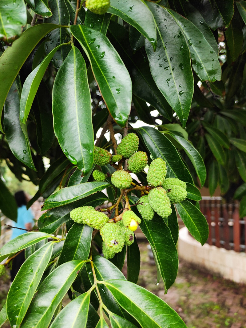 古荔枝樹依然枝葉依然茂盛,枝頭掛滿果實(shí)。