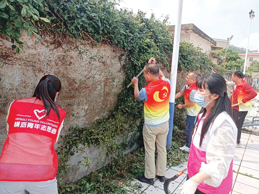 “清理舊墻上的爬山虎是最難的事。但黨員遇難更要頂上去、帶頭干,發揮不怕苦、不怕累、不怕臟的工作作風。”黨員鐘春雄告訴記者。