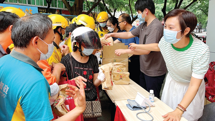 熱騰騰的愛心早餐開啟了一天的勞動生活。美團騎手江劉拿上一份漢堡和豆漿,在惠民驛站吃起了早餐:“這樣的關愛活動經常開展,上次在我們站點就給我們送了防曬套裝。這次來到惠民驛站,又收到了夏日禮包,很不錯。今天還有咨詢服務攤位,我做了個體檢,還了解了一下職業維權的內容。”