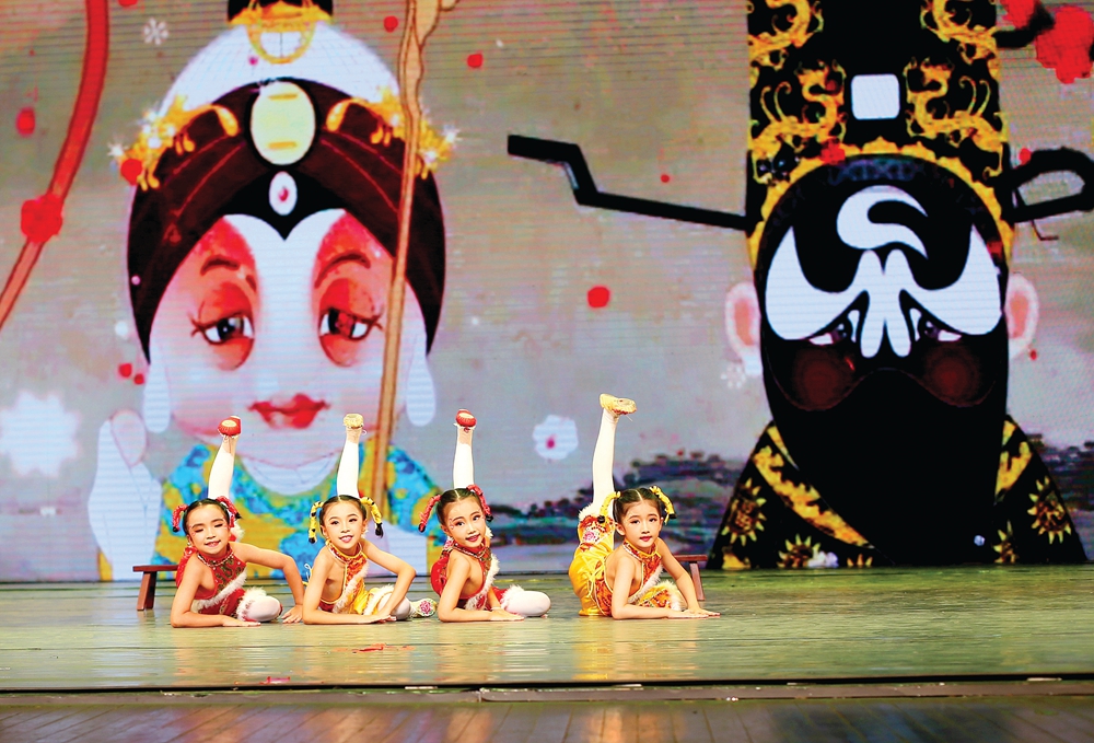 另一個展演的看點在舞蹈《小看戲》中:4個小女孩兒把孩童看戲時好奇、機靈的神態(tài)展現(xiàn)得淋漓盡致。她們純真的眸子里,閃爍著對戲曲的好奇和熱情,充分展現(xiàn)青少年兒童對中國文化的向往。舞蹈編排充滿節(jié)奏感,小演員們的靈活身體展現(xiàn)出扎實的基本功,讓觀眾沉浸其中,無法移開目光。