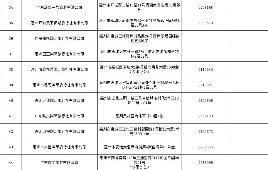 后期旅行社名單更新可登錄“惠州市惠城區文化廣電旅游體育局政府信息公開平臺”進行查詢,也可以關注“惠城文旅體”微信公眾號信息。
