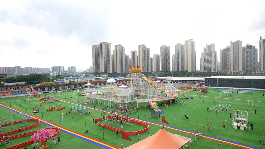 馬安萬聚游樂園的王牌項目是魔法城堡,這個大體量戶外親子樂園項目由可自由組合的超大型無動力游樂設備組成,蹦床、滑梯、天空步道等都有,充滿童趣和體驗感,將成為孩子們的游樂新寵。此外,彩虹滑道長約100米,在惠州同類項目中數一數二。