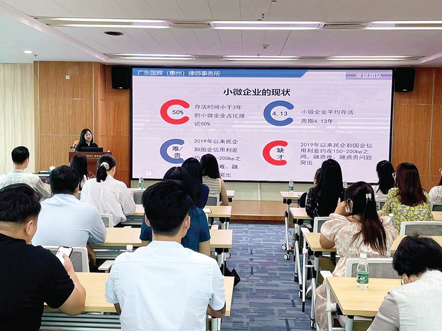 惠州日報訊 (記者彭紅霞 通訊員陳晨芳)日前,有企業(yè)向江北街道CBD樓宇企業(yè)服務站提出,經營過程中遇到一些法律問題需要咨詢。針對企業(yè)的需求,服務站工作人員通過走訪調研、分析研判,聯系有相關需求的企業(yè)30余家,特邀廣東國暉(惠州)律師事務所專職律師為大家答疑解惑。9月8日上午,一場以“小微企業(yè)如何避免常見法律糾紛”為主題的法律知識講座在華貿大廈舉行。