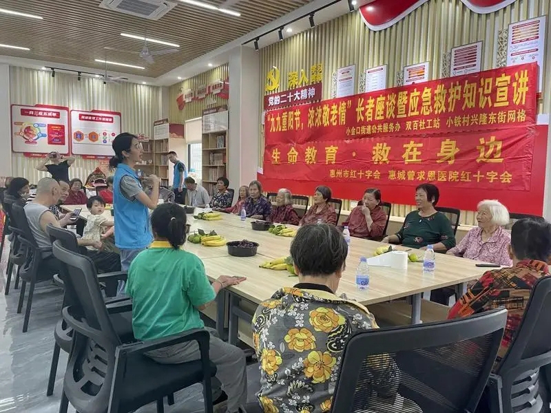 為進一步弘揚中華民族敬老、愛老、助老的傳統美德,讓社區老人度過一個歡樂、祥和、健康、文明的老年節,10月20日上午,惠城區小金口街道社會工作服務站聯合小鐵村興隆東街網格黨群服務站、惠城曾求恩醫院紅十字會志愿服務隊,開展“九九重陽節,濃濃敬老情”長者座談暨應急救護知識宣講活動。