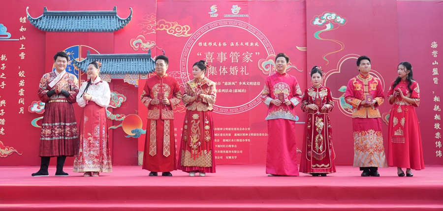 惠州日報訊 (記者馬海菊)推進移風易俗,涵養文明新風。日前,2023年惠州市“惠新風”鄉風文明建設主題系列活動(惠城站)“喜事管家”集體婚禮,在市文明村——惠城區水口街道下源村舉行。4對新人身著傳統中式禮服,在親朋、嘉賓的祝福下走進婚姻殿堂,婚禮儀式踐行了健康向上、勤儉節約的文明新風尚。
