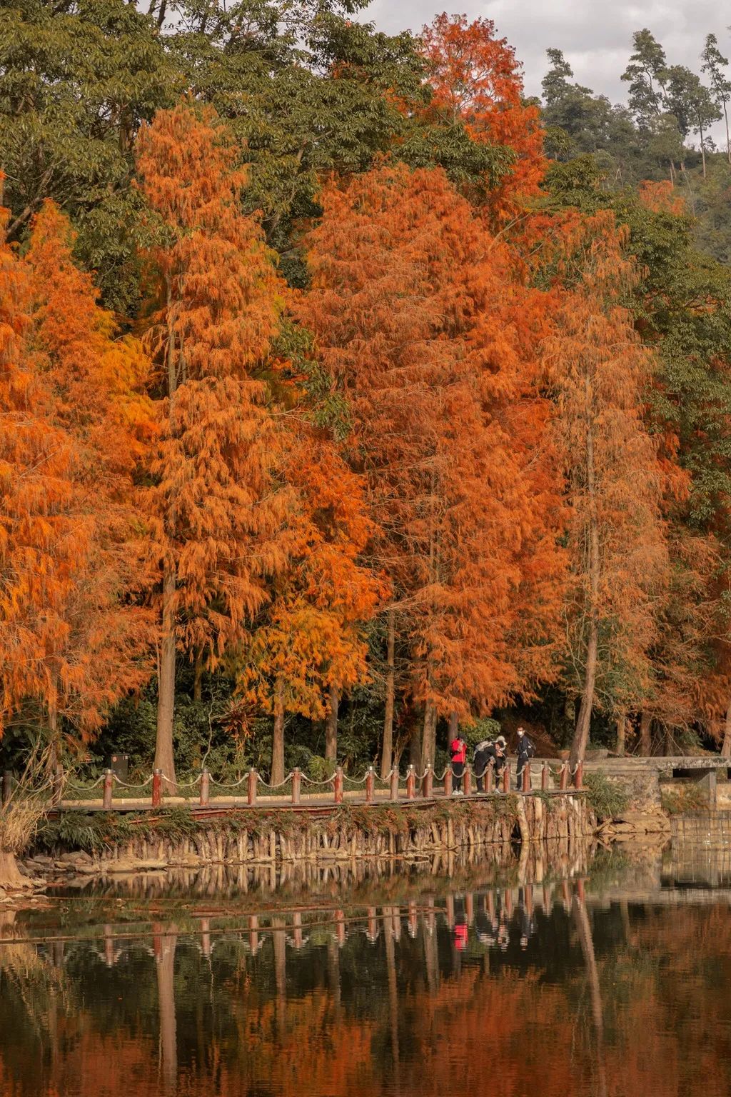 配上金紅相間的落羽杉,