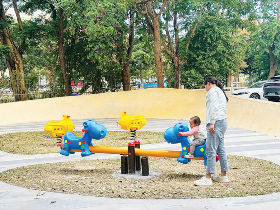 河南岸馬莊村兒童友好公園位于金山河畔,之前雜草叢生、蚊蟲滋生、落葉堆積。借著馬莊村精品村改造建設的契機,該公園于2022年12月動工建設,如今這里干凈整潔,還有兒童滑梯、秋千、蹺蹺板等游樂設施,成為小朋友們休閑娛樂的好去處。