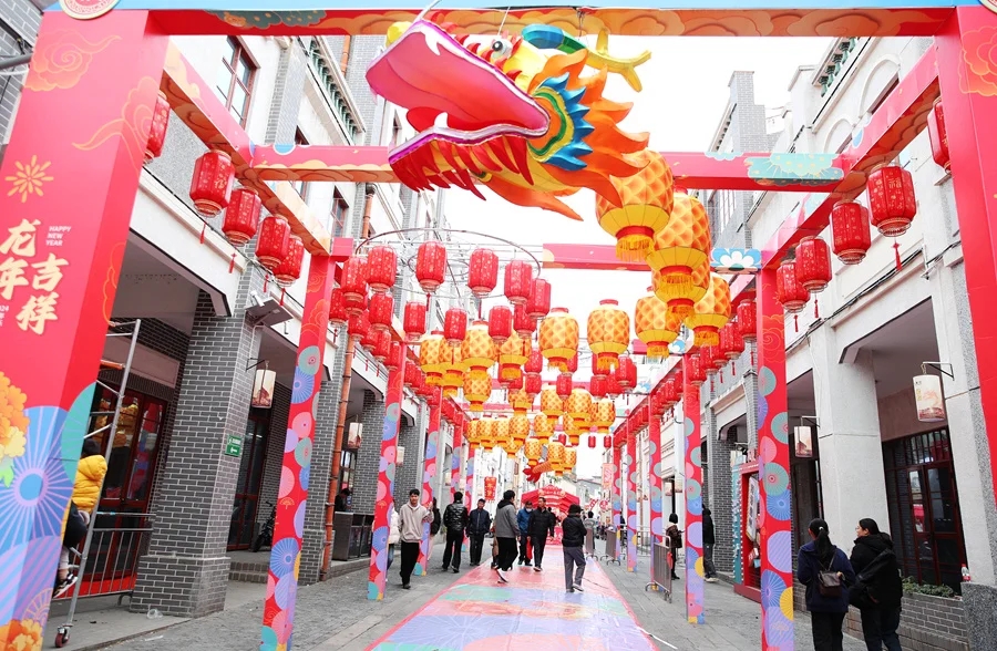 晚上,“花街”將搖身一變成“花燈”長廊,500米的花燈長廊炫彩紛呈,各色的燈籠懸掛在街上,龍年特色和東坡特色的打卡墻,把古街裝點(diǎn)出濃濃新春氛圍。屆時,晚上7點(diǎn),還有穿梭“轉(zhuǎn)運(yùn)龍門”民俗表演,還能觀賞現(xiàn)場大型“舞龍”巡游。