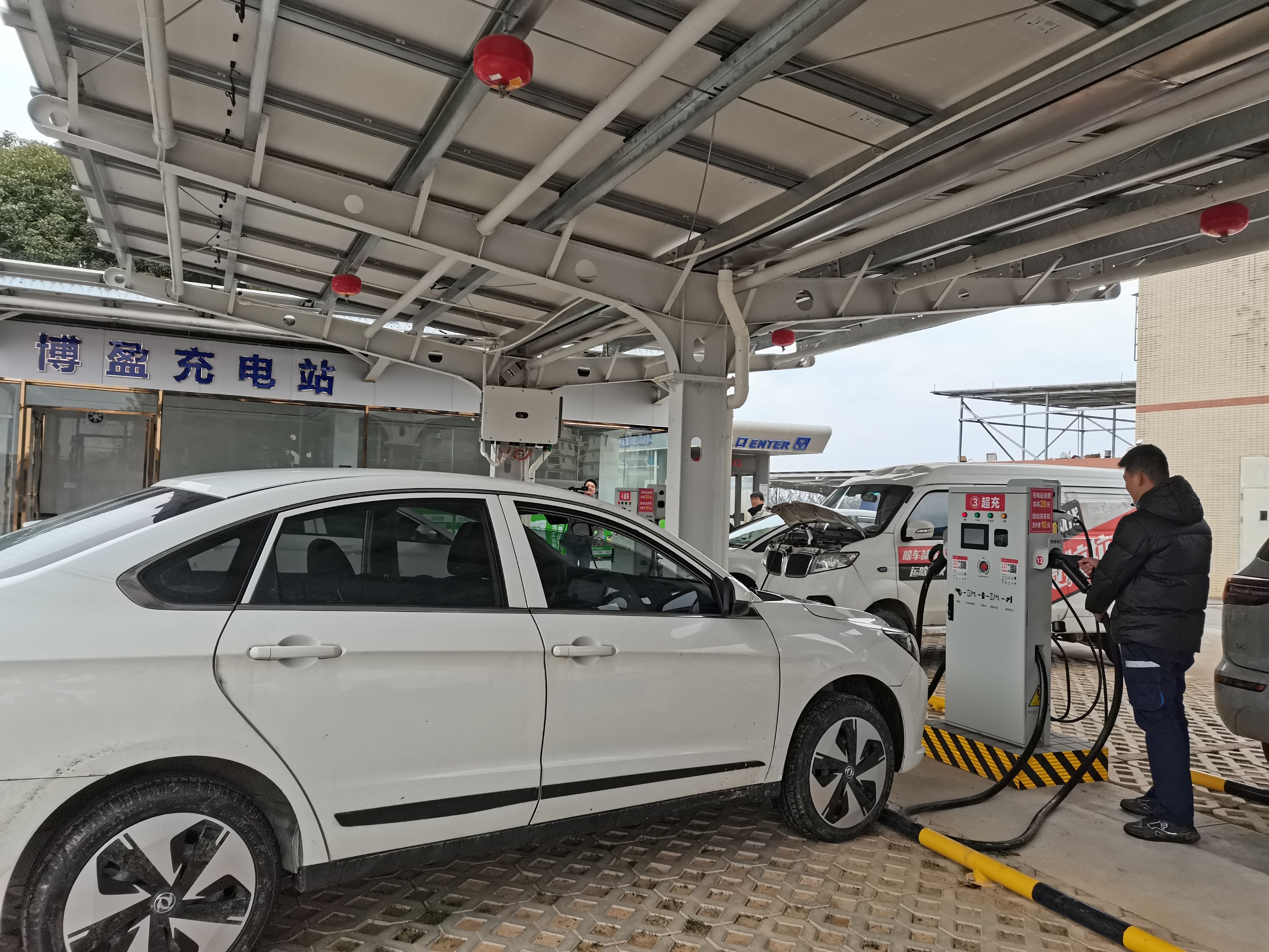 車主在博盈綜合能源續航中心為新能源車充電。