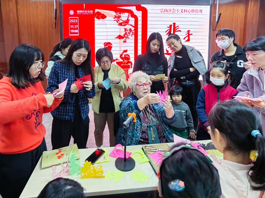 劉雅晶不遺余力地開展公益教學(xué)活動(dòng),將剪紙技藝教授給更多市民。 惠州日?qǐng)?bào)記者湯渝杭 攝