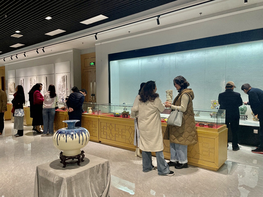市民參觀泥塑文化傳承作品展。惠州日報記者鄧惠婷 通訊員張耀敬 攝