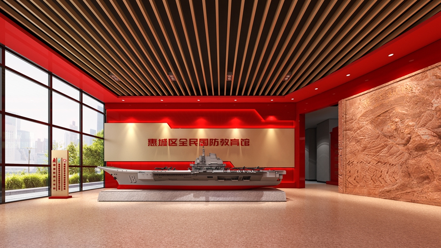 惠城區(qū)全民國防教育館展廳內(nèi)景圖。