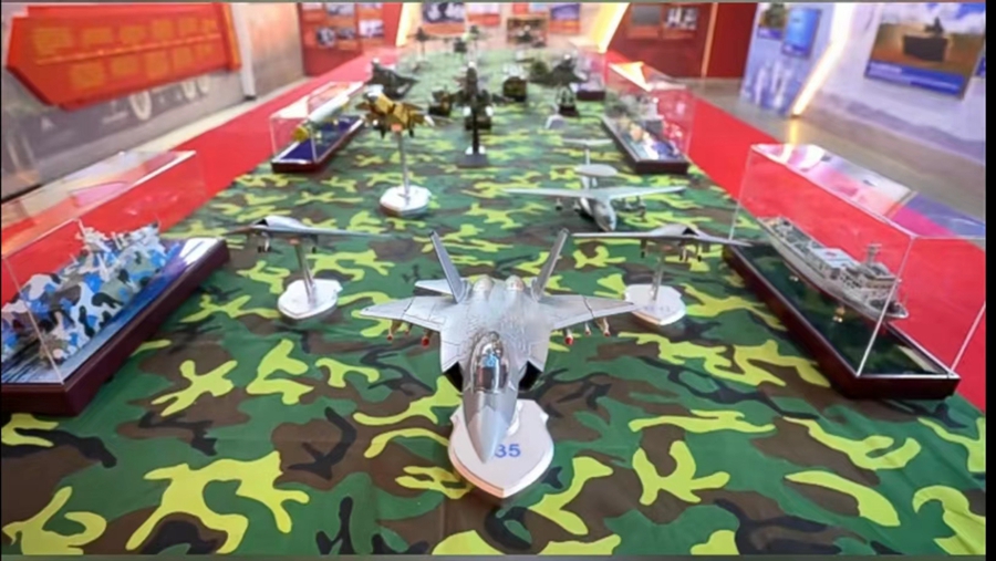 館內(nèi)陳列護國利器模型,展現(xiàn)新時代武裝設(shè)備建設(shè)成就。