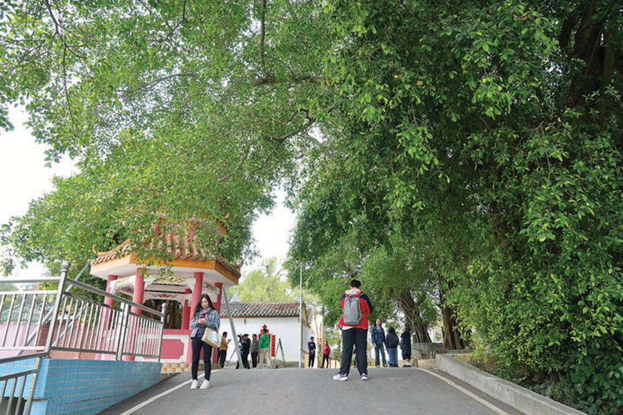 文榮華告訴記者,村里有7棵樹齡270年到300年的古榕樹。2022年春,文氏祖廟邊的一棵百年古樹受風雨天氣影響,被連根拔起倒伏在地,牽動全村村民的心。為了“搶救”古樹,駐村干部、村“兩委”干部等聯合相關責任部門以及村里的熱心群眾,開展了一場合力救樹行動。在大家的共同努力下,古樹重新“站”起來了。現在,古樹四周有強力的鐵架支撐,樹上掛著營養液持續復壯,古樹長得枝繁葉茂。村里的古樹實行掛牌保護,古樹群郁郁蔥蔥,福蔭全村百姓。