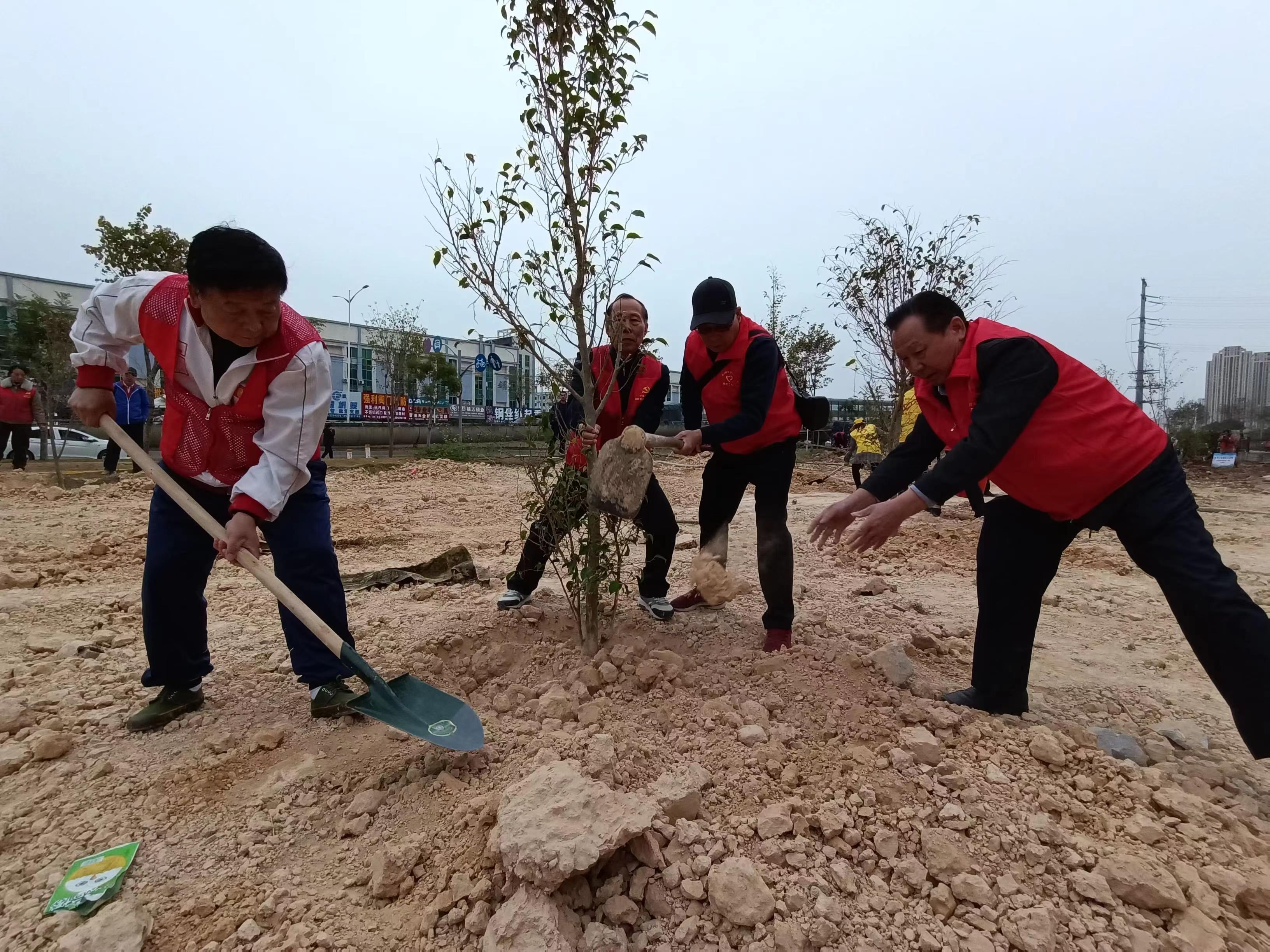日前,在惠城區(qū)小金口金龍大道一側(cè)舉行的“綠美建設(shè) 共植共管”植樹活動現(xiàn)場,活躍著一群志愿者,其中一批銀發(fā)老者格外引人注目,有的揮鋤挖坑,有的扶正樹苗,有的鏟土回填,干得熱火朝天,不亦樂乎。他們是來自小金口街道鐵路退休黨委的“銀齡志愿服務(wù)隊”的老黨員。