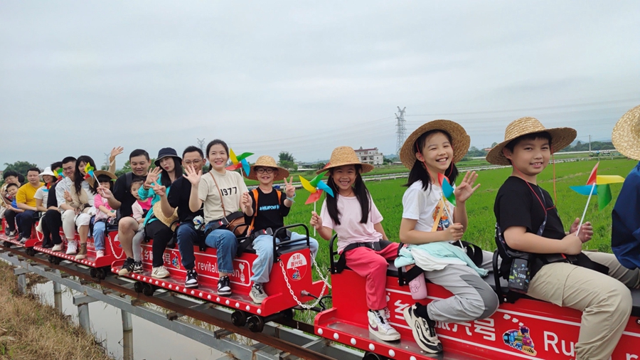 橫瀝鎮(zhèn)墨園村鄉(xiāng)村游火爆。這是游客在墨園村乘坐稻田小火車開心游玩。惠州日?qǐng)?bào)記者彭紅霞 通訊員劉紅蘭 攝