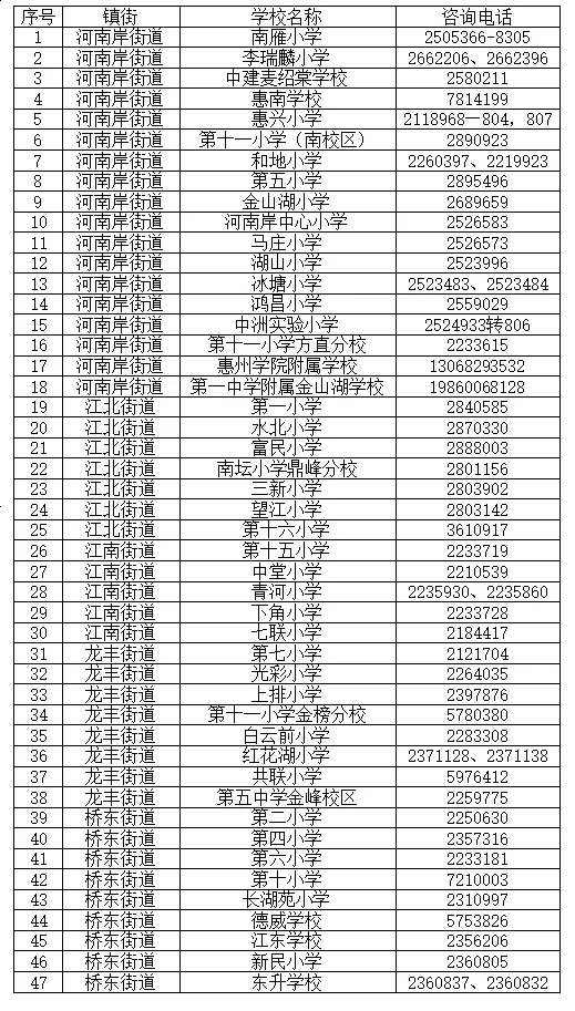 1.惠城區2024年秋季學期公辦小學招生咨詢電話
