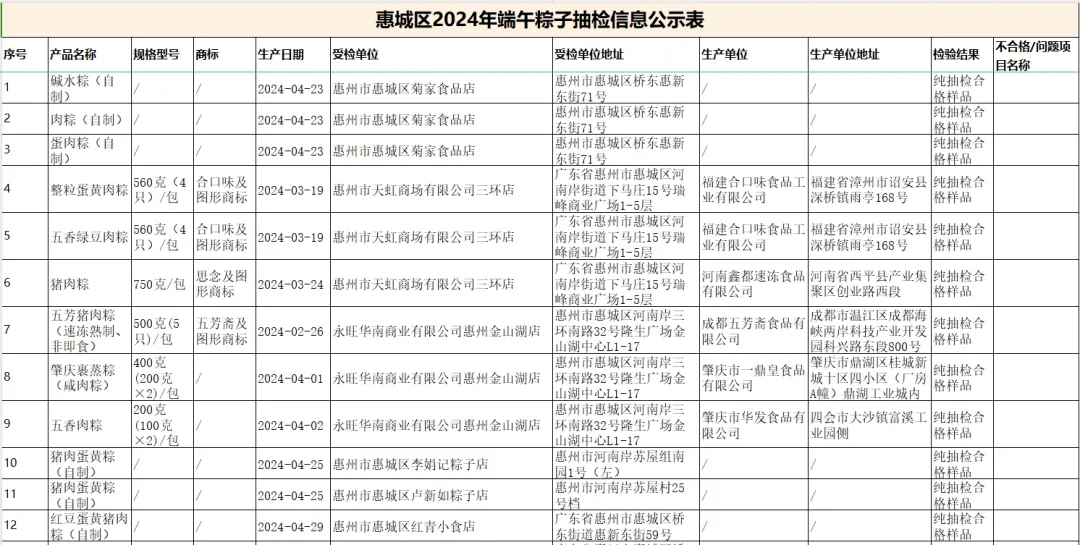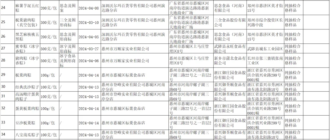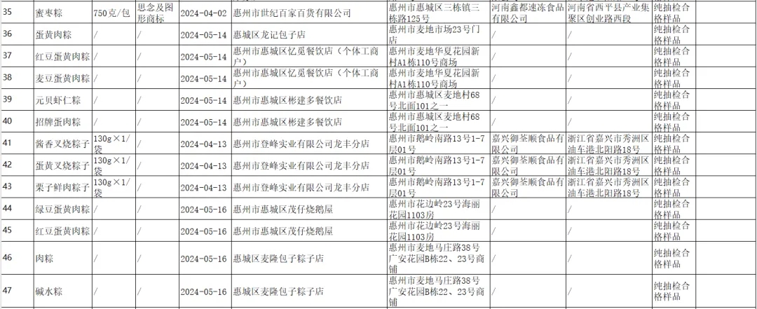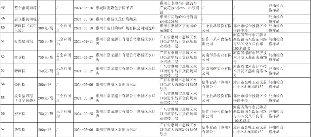 抽檢過程中,工作人員依據GB 2760-2014《食品安全國家標準 食品添加劑使用標準》、GB 29921-2021《食品安全國家標準 預包裝食品中致病菌限量》、SB/T 10377-2004《粽子》、GB 19295-2021《食品安全國家標準 速凍面米與調制食品》等標準的要求,對樣品的山梨酸及其鉀鹽、脫氫乙酸及其鈉鹽、糖精鈉、安賽蜜、甜蜜素、過氧化值、商業無菌、金黃色葡萄球菌、沙門氏菌、大腸菌群、菌落總數、霉菌等指標進行了檢驗,結果顯示,60件樣品全部符合相關食品安全標準,監督抽檢合格率為100%。