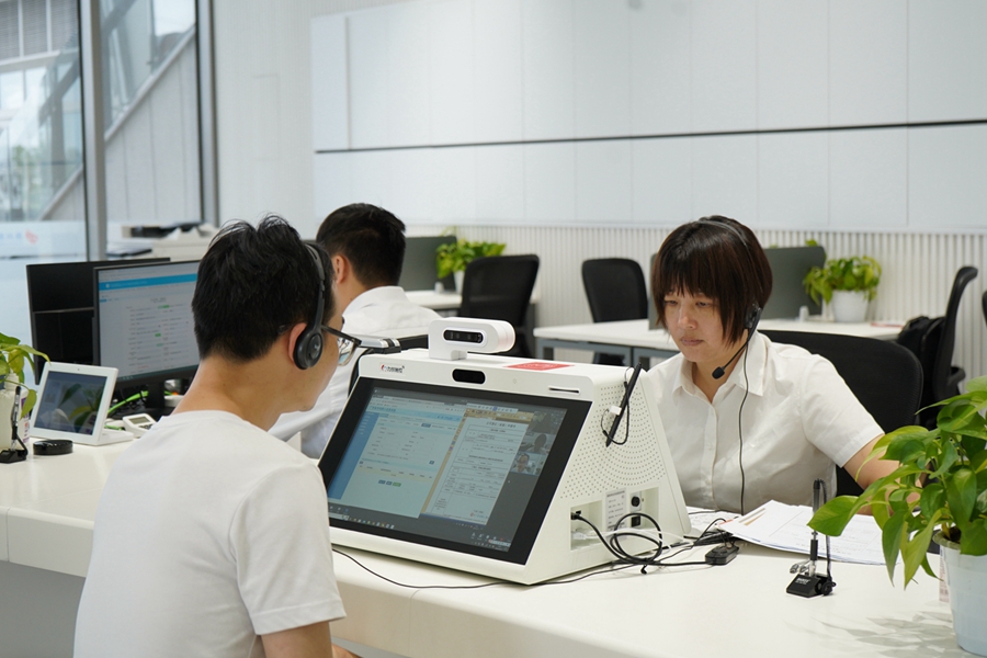 政務服務“視頻辦”提高辦事效率。 惠州日報記者鄧惠婷 通訊員梁曉婷 鐘潔怡 攝