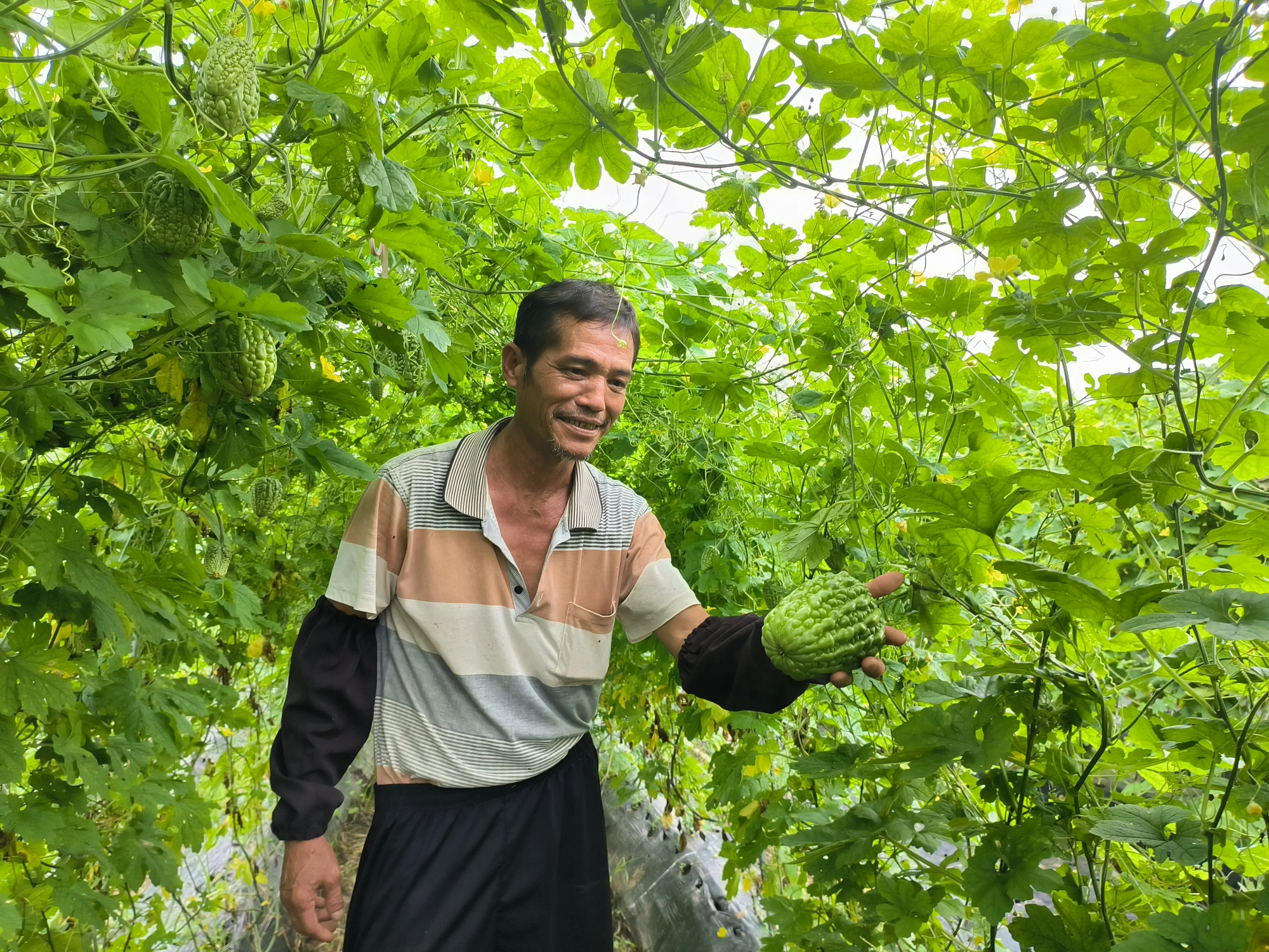 在今年極端氣候下試種苦瓜品種仍獲高產。 惠州日報記者謝菁菁 通訊員藍新月 許建輝 攝