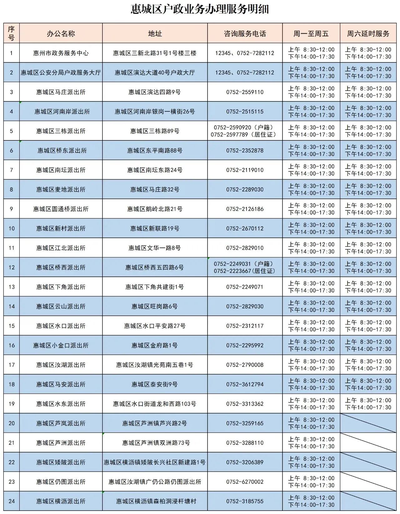 此外,惠城公安也已在全區各派出所
