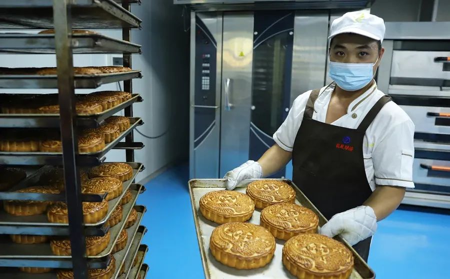 郭師傅月餅生產車間內,月餅制作在火熱進行。