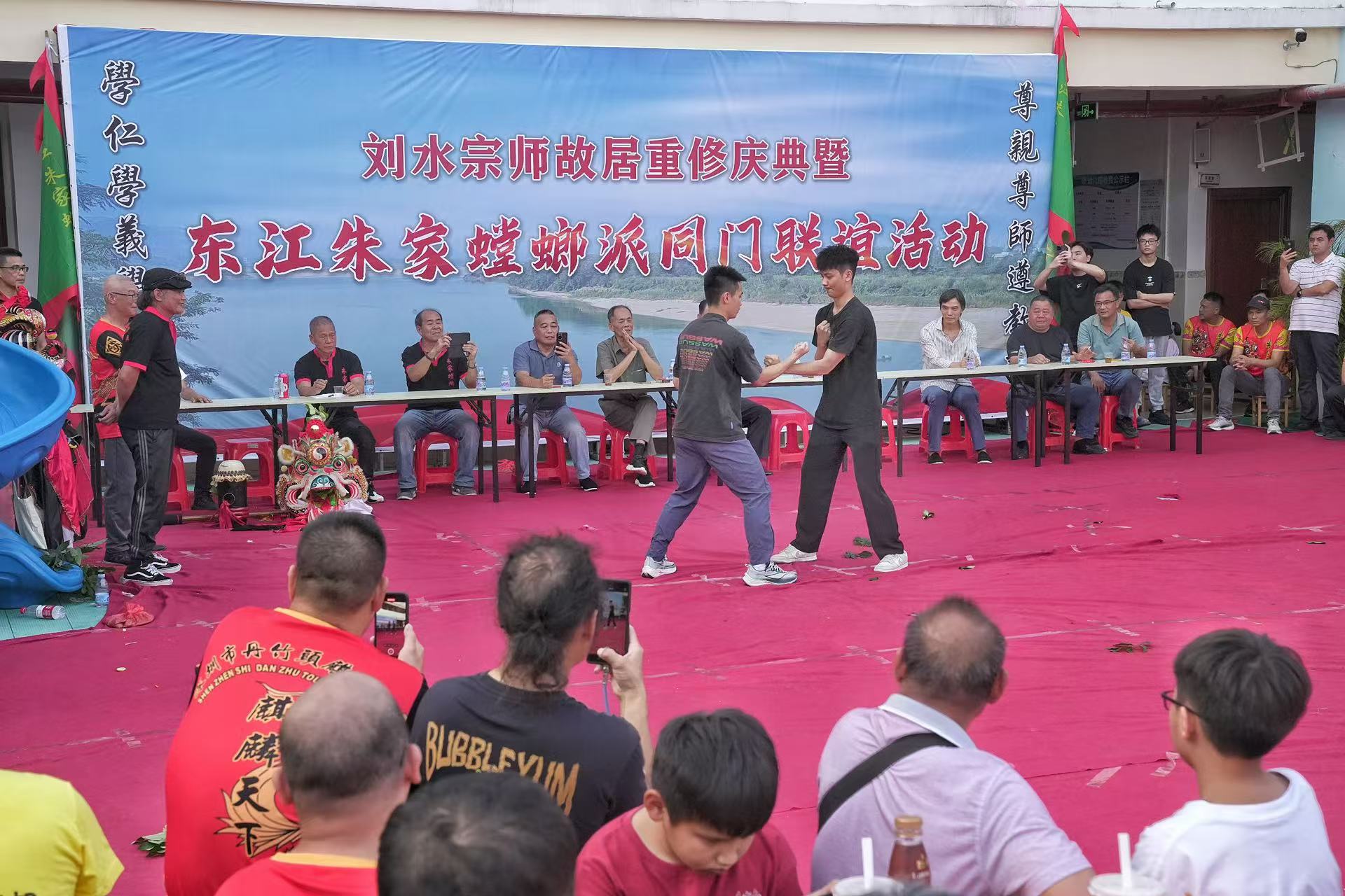 惠州日報訊 (記者彭紅霞 特約通訊員廖詠琳 通訊員林。11月3日下午,惠城區蘆洲鎮香園村鑼鼓喧天,首屆東江朱家螳螂派傳承交流活動在此舉行。來自香港、深圳、東莞各地的朱家螳螂派弟子齊聚一堂,以麒麟獻禮、用拳術交流,共同慶祝宗師劉水故居修繕一新,傳承和弘揚朱家螳螂派。