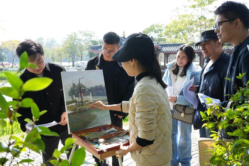 12月13日,在惠州西湖豐渚園的湖光山色中,一場名為“湖光染翠韻,教藝繪丹青”的2024年惠城區中小學美術青年教師風景寫生比賽舉行。這場集創作與競技于一體的比賽吸引了約120位美術教師參加,他們以滿腔熱情創作出一幅幅充滿創意的美術作品。