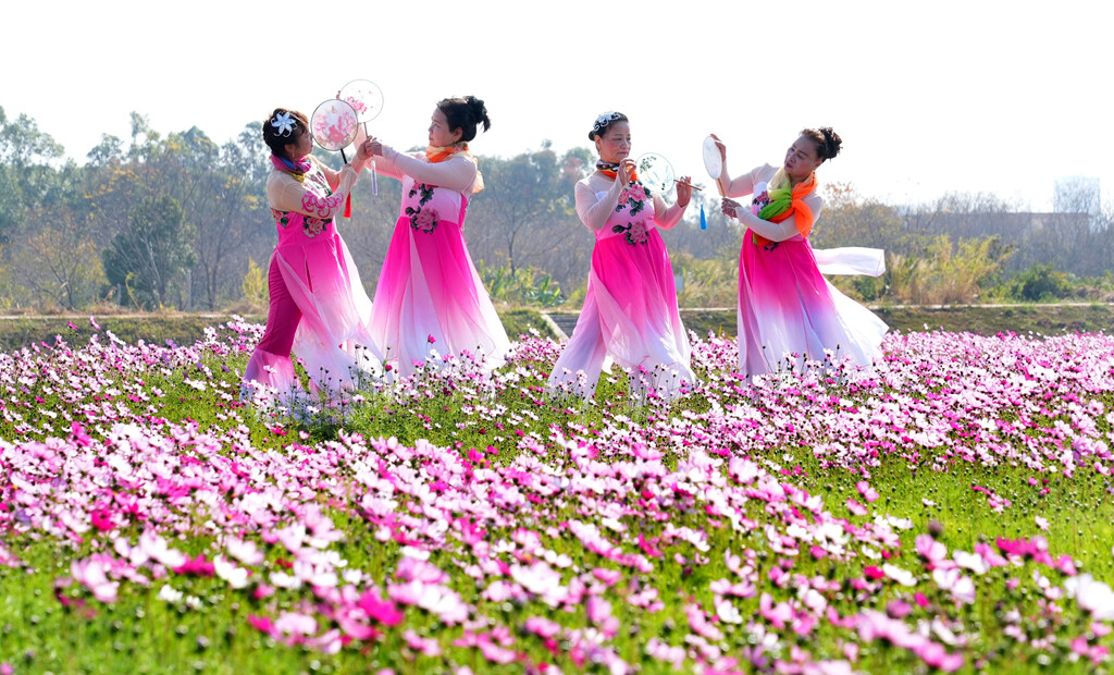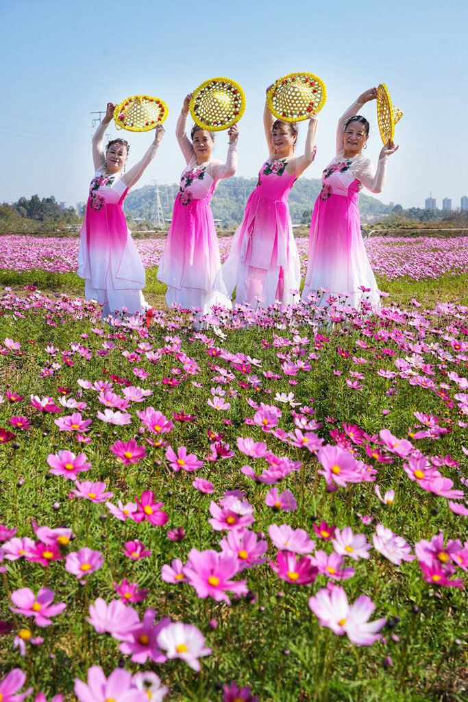 1月18日,在惠州市惠城區小金河大道路邊,有30畝格桑花正在盛放,在陽光的照耀下,朵朵格桑花迎風搖曳,就像一片粉紅色的海洋,而蝴蝶和蜜蜂則在這片花海中穿梭忙碌著,還有愛好舞蹈的人士在這里翩翩起舞,盡情地享受著這難得的盛宴。