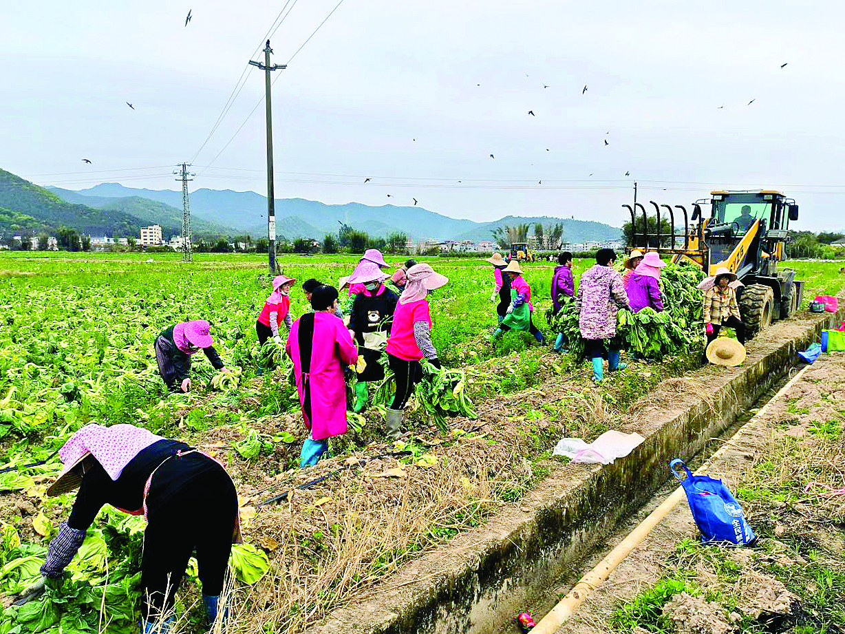 觀摩會現場采摘梅菜測產驗收。惠州日報記者謝菁菁 通訊員黃欣欣 龔玲 攝