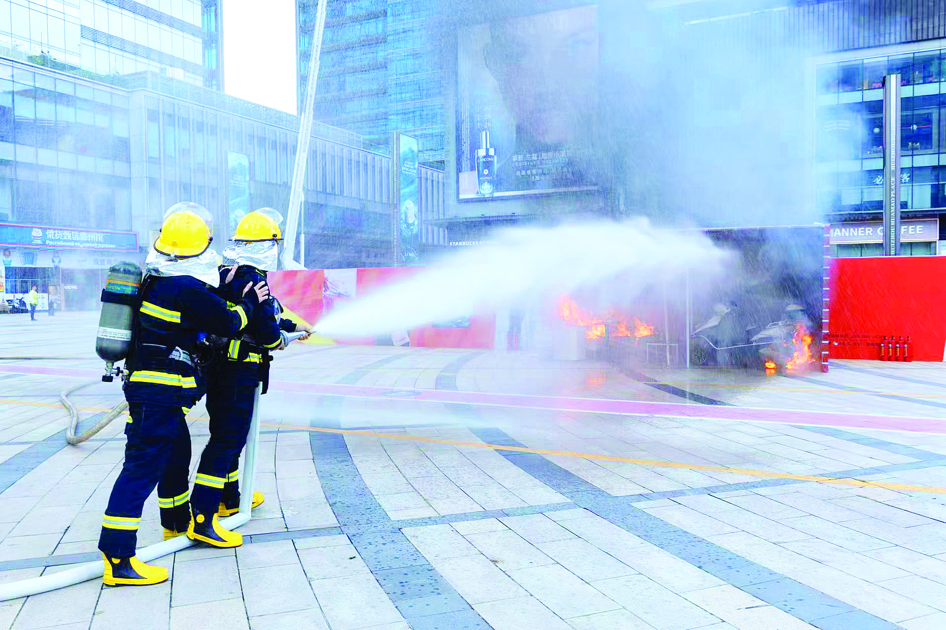 應(yīng)急演練活動(dòng)在華貿(mào)天地廣場(chǎng)舉行。 惠州日?qǐng)?bào)記者彭紅霞 通訊員鐘穎禎 黃蕾 攝
