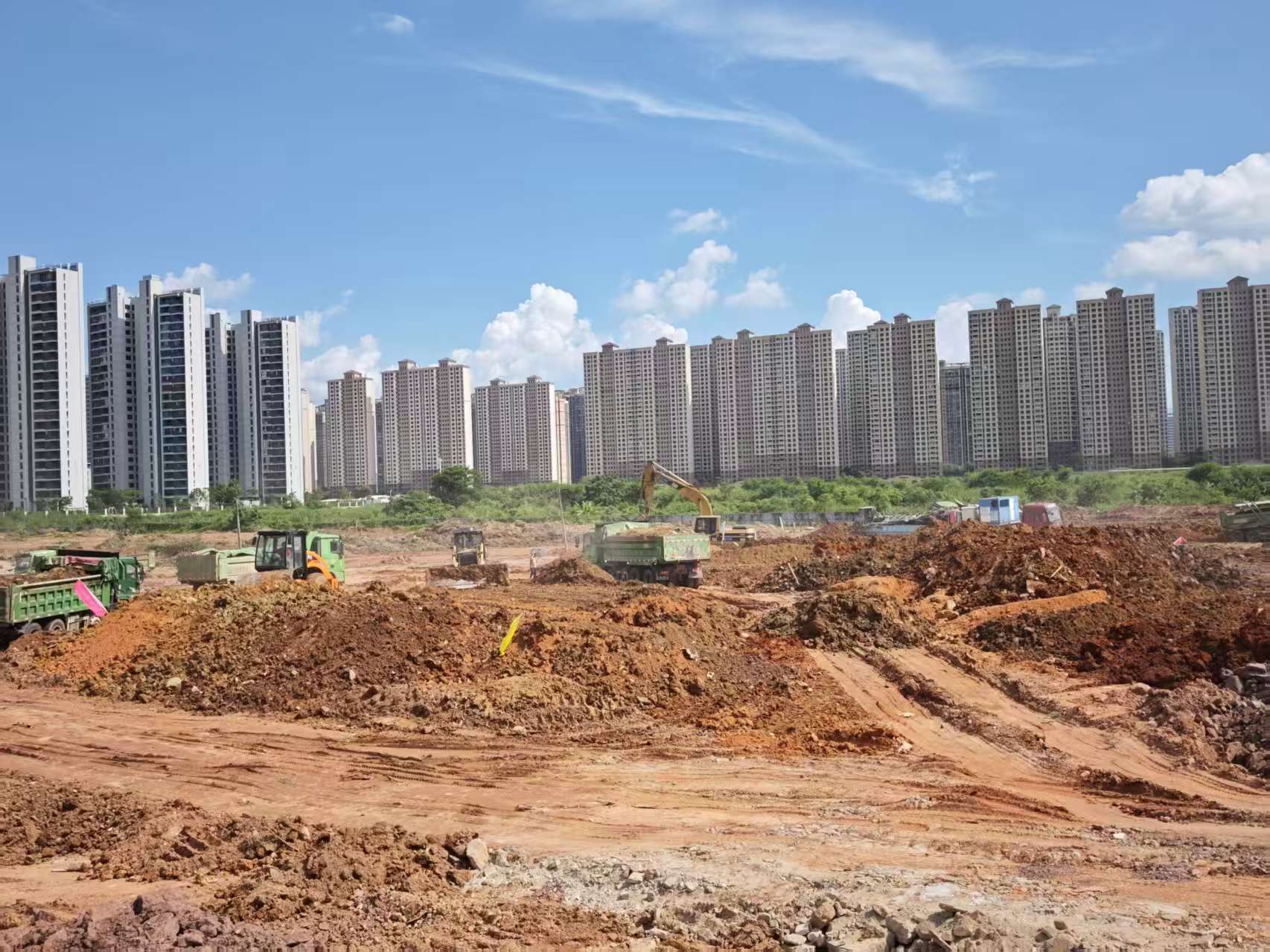 紙上政策落到中海地產金山湖項目處,就是“拿地即動工”熱火朝天的建設現場。