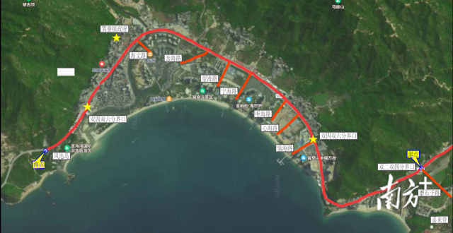 金海灣大道(S387線喜來登路口至鳳池島段)升級改造示意圖 。