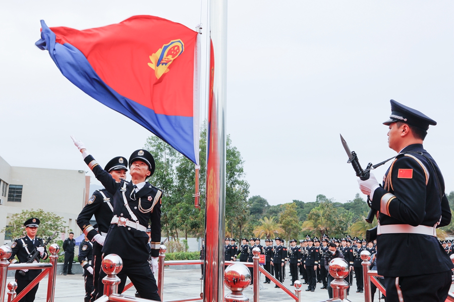 惠東公安為慶祝第三個中國人民警察節舉行升警旗儀式。