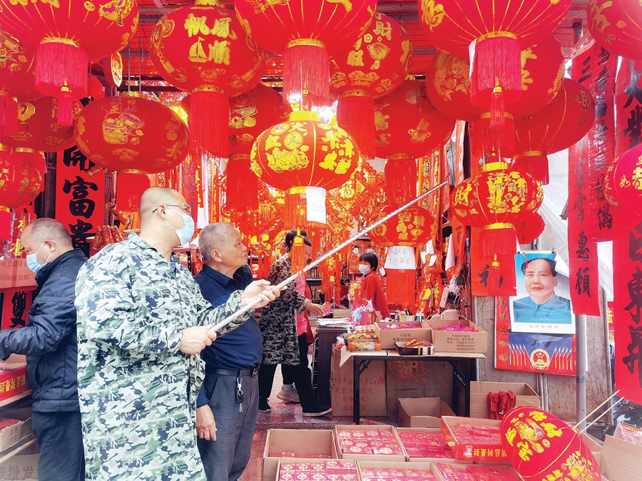 惠州日報訊 (記者藍(lán)斐菲)春節(jié)臨近,惠東縣城年味漸濃。日前,記者在縣城街尾井看到,整條街都被年貨裝扮得紅紅火火,大紅燈籠、利市封、春聯(lián)應(yīng)有盡有,濃濃的年味撲面而來。