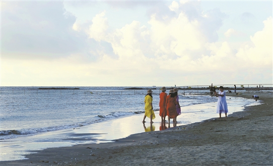 海邊的游客享受著踏浪踩沙的樂(lè)趣 張衛(wèi)中 攝